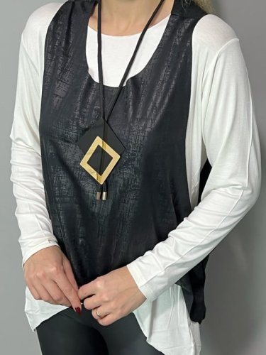 • Czarny skórzany damski garnitur z kamizelką i naszyjnikiem, trzyczęściowy