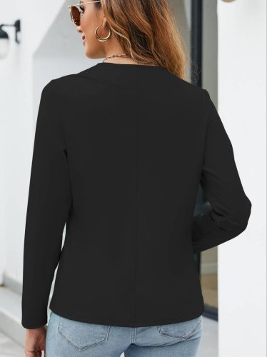 Damska marynarka z długim rękawem i otwartym przodem, importowana z krepy