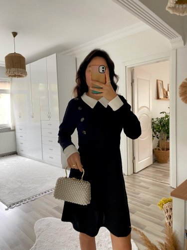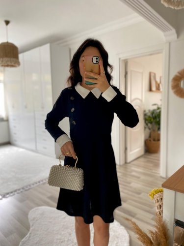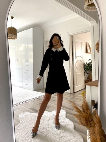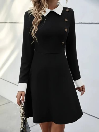 • Sukienka damska z długim rękawem i kołnierzykiem w kształcie litery A, krótka, importowana, z krepy