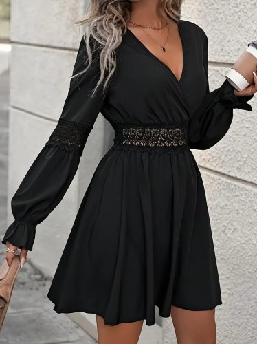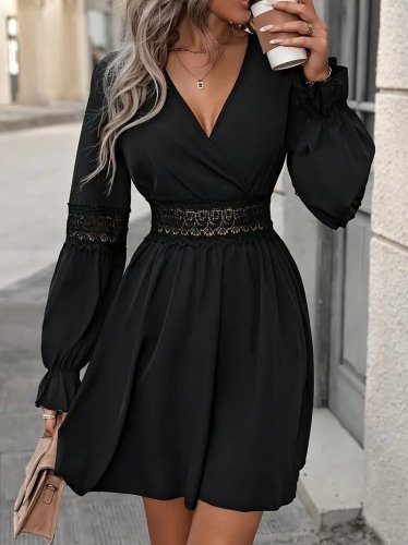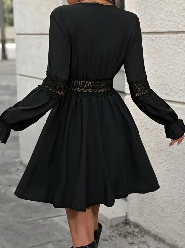 Damska sukienka z długim rękawem, dwurzędowa, koronkowa, zapinana na zamek błyskawiczny, krótka, importowana, z krepy