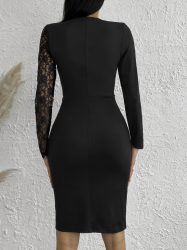 Sukienka damska do nurkowania z długim rękawem, koronką na jeden rękaw, dekoltem w serek i rozcięciem