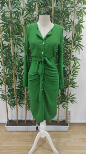• Damska sukienka do aerobiku midi z długim rękawem i guzikami z przodu, zapinana w talii i z paskiem