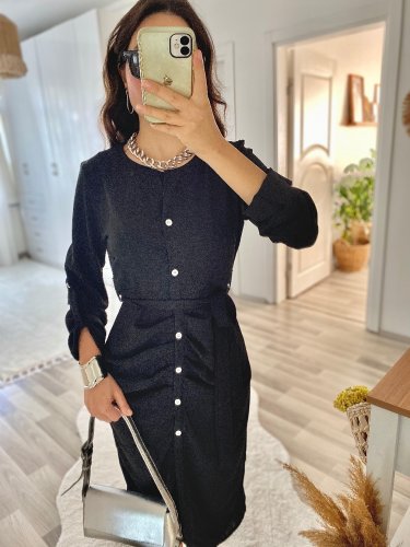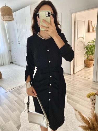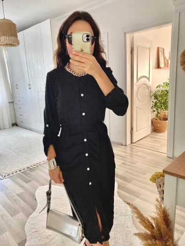 Damska sukienka do aerobiku midi z długim rękawem i guzikami z przodu, zapinana w talii i z paskiem