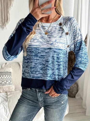 Damska bluzka z długim rękawem i okrągłym dekoltem, zapinana na guziki, z dzianiny jersey