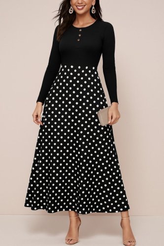 Bluzka damska z długim rękawem i guzikami, spódnica z wiskozy, dzianinowa sukienka maxi z krepy