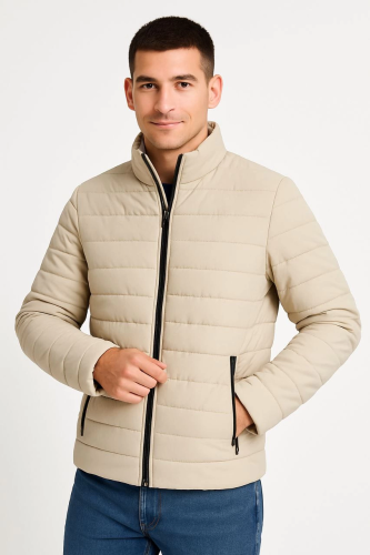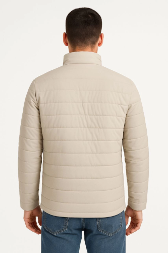 • Kurtka bomber męska – materiał wodoodporny, pikowana podszewka, zamek błyskawiczny, zimowa – beżowa