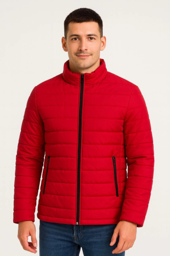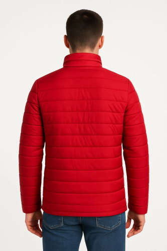 • Kurtka bomber męska – materiał wodoodporny, pikowana podszewka, zamek błyskawiczny, zimowa – czerwona