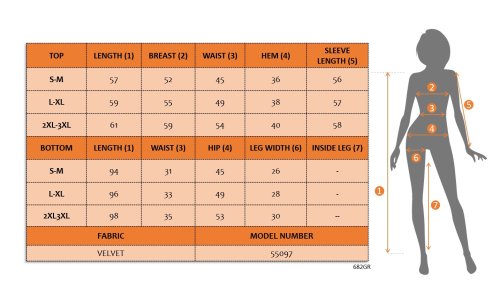 • Damski aksamitny garnitur z długim rękawem, dekoltem w serek i mankietami w paski