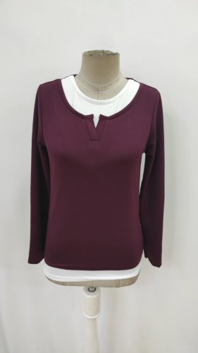 • Bluzka damska z długim rękawem i dekoltem w serek, dwukolorowa, z wiskozy dwunitkowej