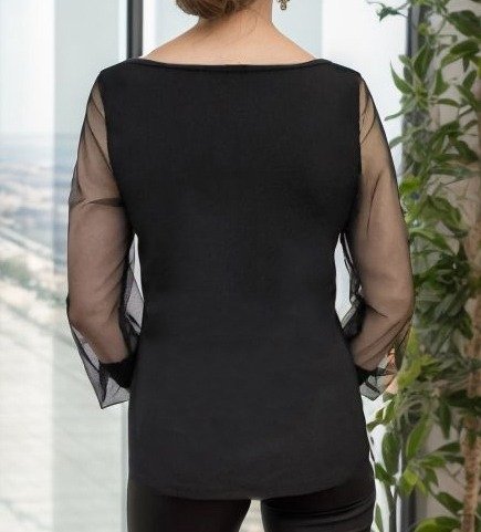 • Bluzka damska z długim rękawem i dekoltem w serek, z tiulu, z dekoltem w serek i perłowymi zdobieniami na klatce piersiowej