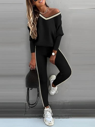 • Dwuczęściowy damski garnitur z bluzką i spodniami z wiskozy z dwóch przędz, z długim rękawem, jednym ramieniem i odkrytymi detalami