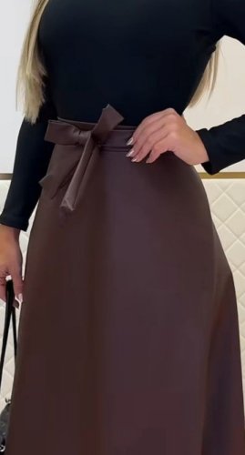 • Długa skórzana spódnica damska z paskiem w talii