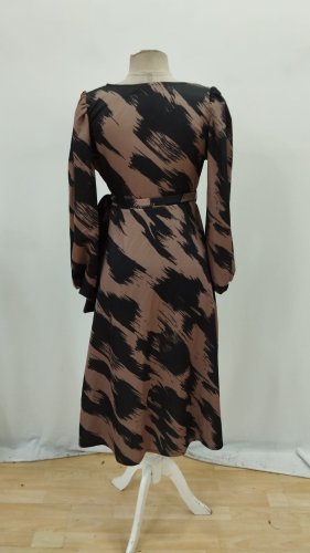 • Damska sukienka mini z długim rękawem, dwurzędowym kołnierzykiem i wiązaniem po bokach, z materiału modalnego