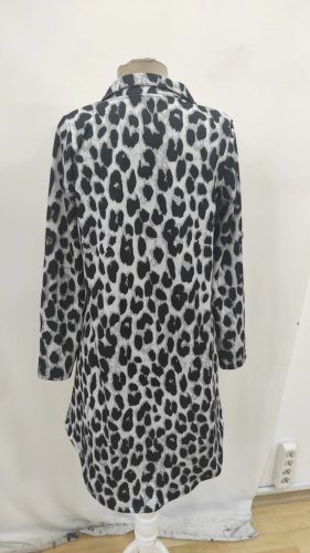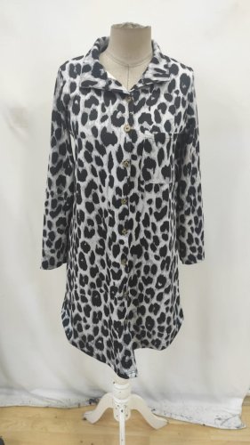 • Damska sukienka midi z długim rękawem i kołnierzykiem zapinanym na guziki z przodu, z nadrukiem w panterkę