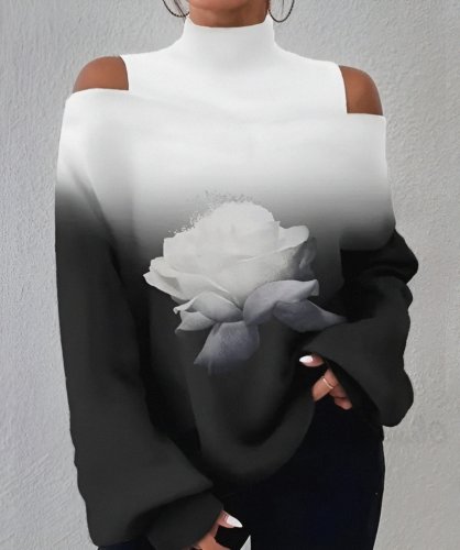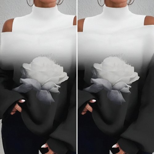 • Damska bluzka do nurkowania z długim rękawem i golfem, z nadrukiem cyfrowym w kolorze różowego okienka