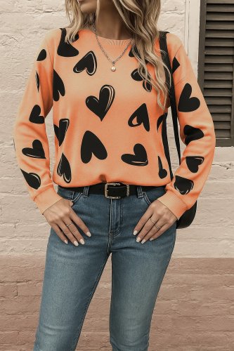 Bluzka damska z długim rękawem i okrągłym dekoltem w serduszka, wykonana z dwóch nici