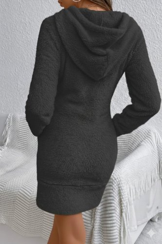 Damska mini sukienka z długim rękawem i kapturem, z kieszenią, wykonana z pluszu