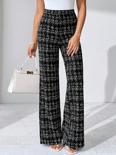 Damskie spodnie tkane z wysokim stanem i szerokimi nogawkami
