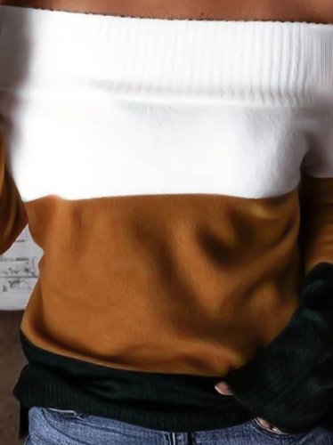 Damska bluzka dzianinowa z długim rękawem i odkrytymi ramionami, w paski