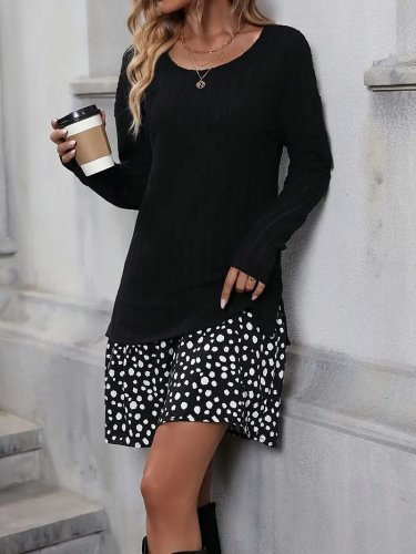 Damska bluzka na ramiączkach z długim rękawem i okrągłym dekoltem oraz sukienka ze spódnicą z dzianiny