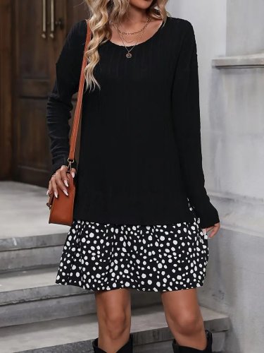 • Damska bluzka na ramiączkach z długim rękawem i okrągłym dekoltem oraz sukienka ze spódnicą z dzianiny