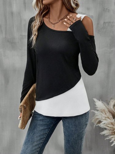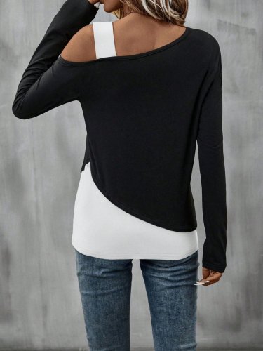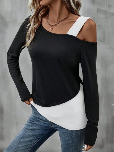• Damska bluzka wiskozowa na jedno ramię, z długim rękawem, w dwóch kolorach, na ramiączkach