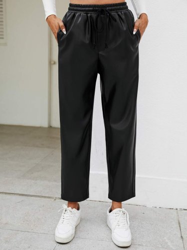 Damskie skórzane spodnie z wysokim stanem i sznurowaniem