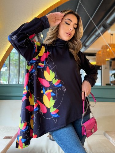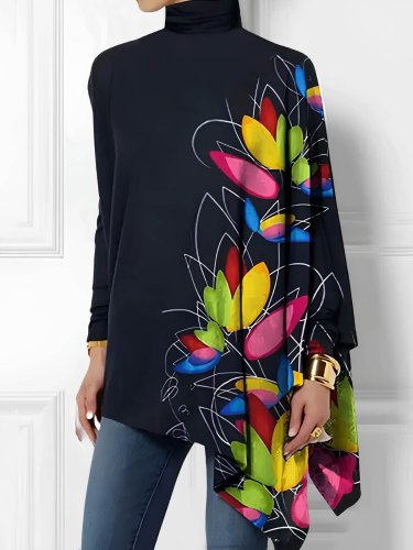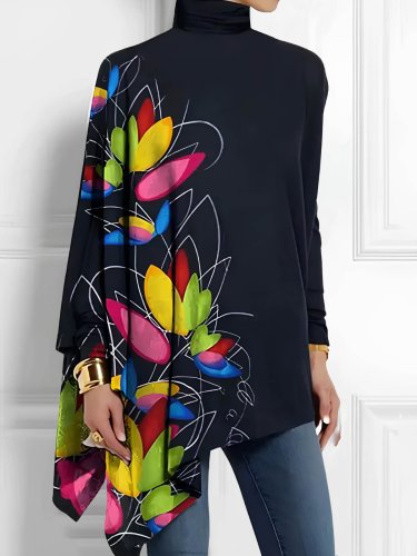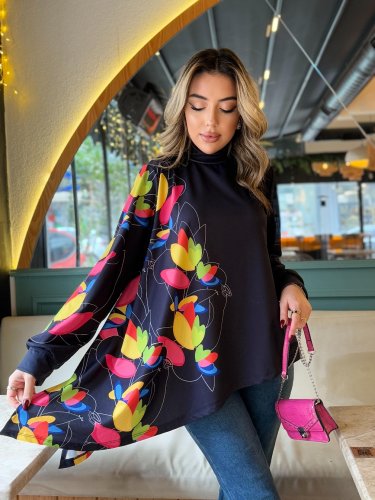 • Damska bluzka z długim rękawem i asymetrycznym golfem o krótkim kroju