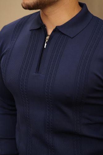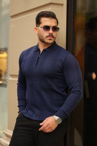 • Męska dzianinowa odzież z długim rękawem i kołnierzykiem zapinanym na zamek