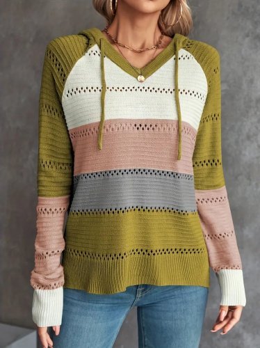 Damska bluzka dzianinowa z długim rękawem i dekoltem w serek, sznurowana, z kapturem