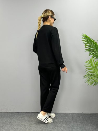 • Dwuczęściowy damski garnitur z długim rękawem, okrągłym dekoltem, wiskoza, bluzka i spodnie