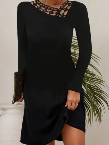• Damska sukienka mini z długim rękawem i koronkowym kołnierzykiem, importowana z krepy