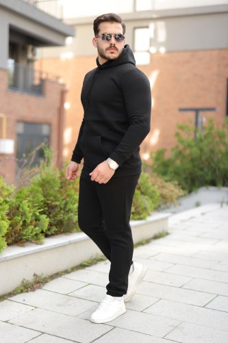 • Męski komplet z kapturem, potrójnie nitowany, z podniesioną górą i dołem
