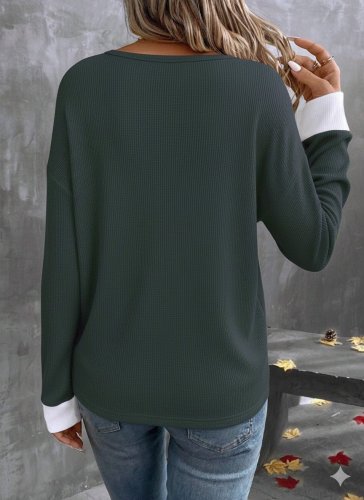 Bluzka damska z długim rękawem i dekoltem w serek, waflowa
