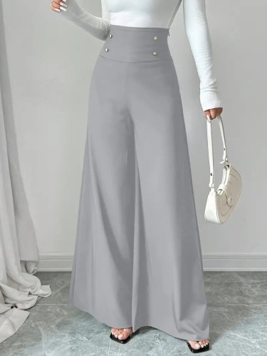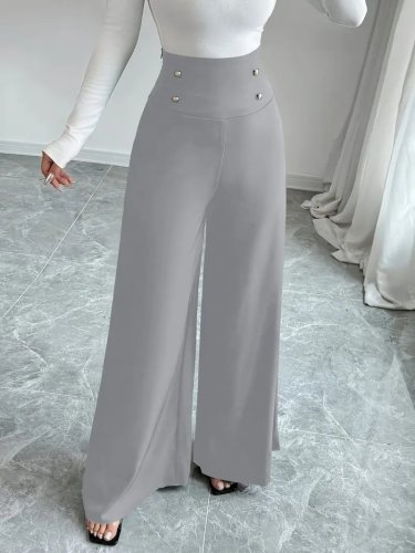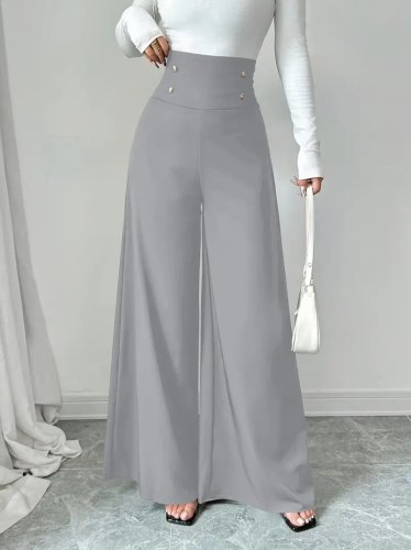 • Damskie spodnie z wysokim stanem i szerokimi nogawkami, zapinane na guziki, importowane z krepy