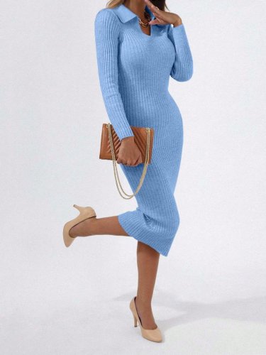 • Długa sukienka damska z dzianiny w kolorze czarnym
