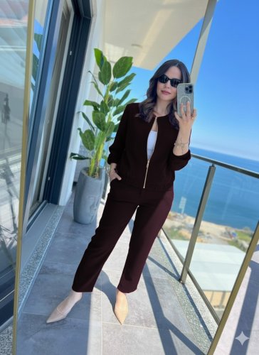 • Damski dwuczęściowy komplet z długim rękawem, zapinany z przodu na zamek błyskawiczny, kurtka i spodnie z modalu