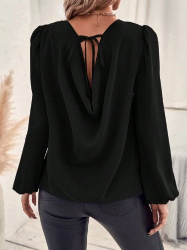 Damska bluzka z długim rękawem, okrągłym dekoltem na plecach, sznurowana, swobodna, importowana, z krepy