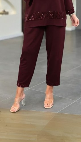 • Komplet damski bluzka i spodnie z długim rękawem i dekoltem w serek z dwurzędowej wiskozy pulpayet