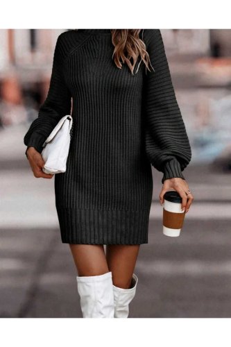 • Damska sukienka mini z długim rękawem i golfem, dzianinowa