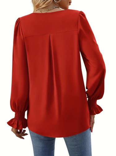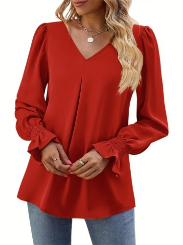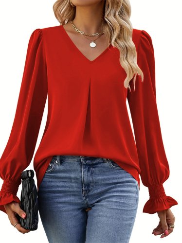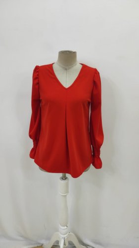 • Damska bluzka z długim rękawem i dekoltem w serek, na co dzień, importowana, z krepy