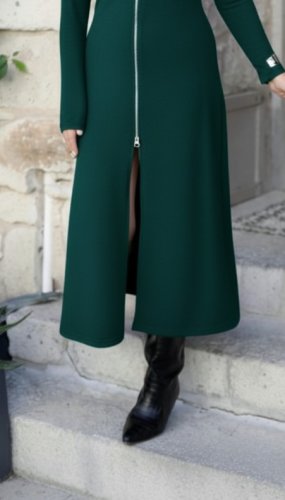 • Damska sukienka z długim rękawem i zamkiem błyskawicznym z przodu, importowana, z krepy