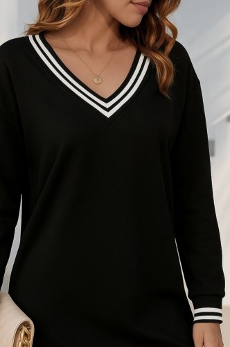 • Damska sukienka z długim rękawem i dekoltem w serek, krótka, wiskozowa, z dwóch przędz