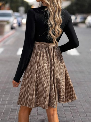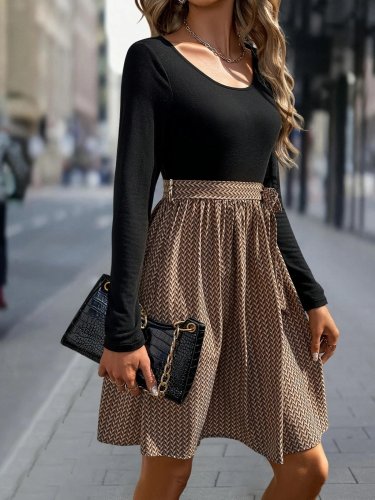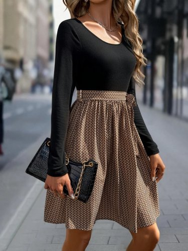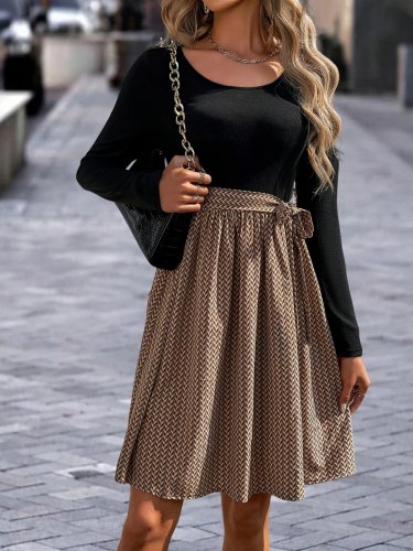 Damska sukienka midi z długim rękawem i okrągłym dekoltem, z wiskozy i dzianiny wiskozowej na dole