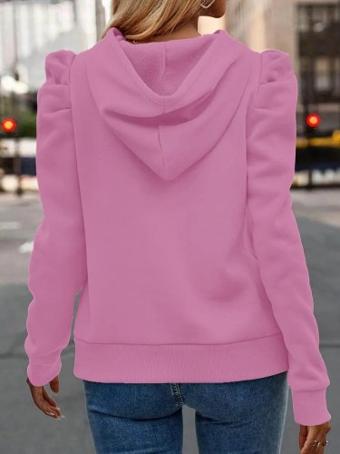 Bluzka damska z długim rękawem, kapturem, sznurowana, z marszczeniami na rękawach