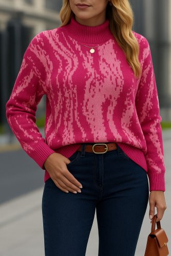 • Bluzka damska z długim rękawem i golfem, dzianinowa, wielokolorowa