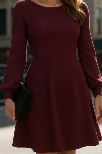 • Damska sukienka dzianinowa z długim rękawem i dekoltem w łódkę