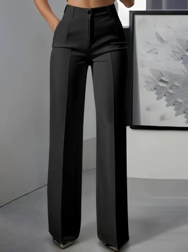 Damskie spodnie z wysokim stanem i kieszeniami z importowanej krepy