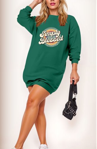 • Sukienka damska z długim rękawem i okrągłym dekoltem, z nadrukiem z dwunitkowej wiskozy