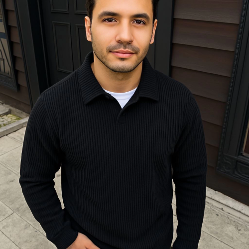 • Męska bluza sztruksowa – bezguzikowy kołnierzyk polo, obszerny, wygodny krój, gruby polar, stylowa, codzienna bluzka na zimę i wiosnę – czarna